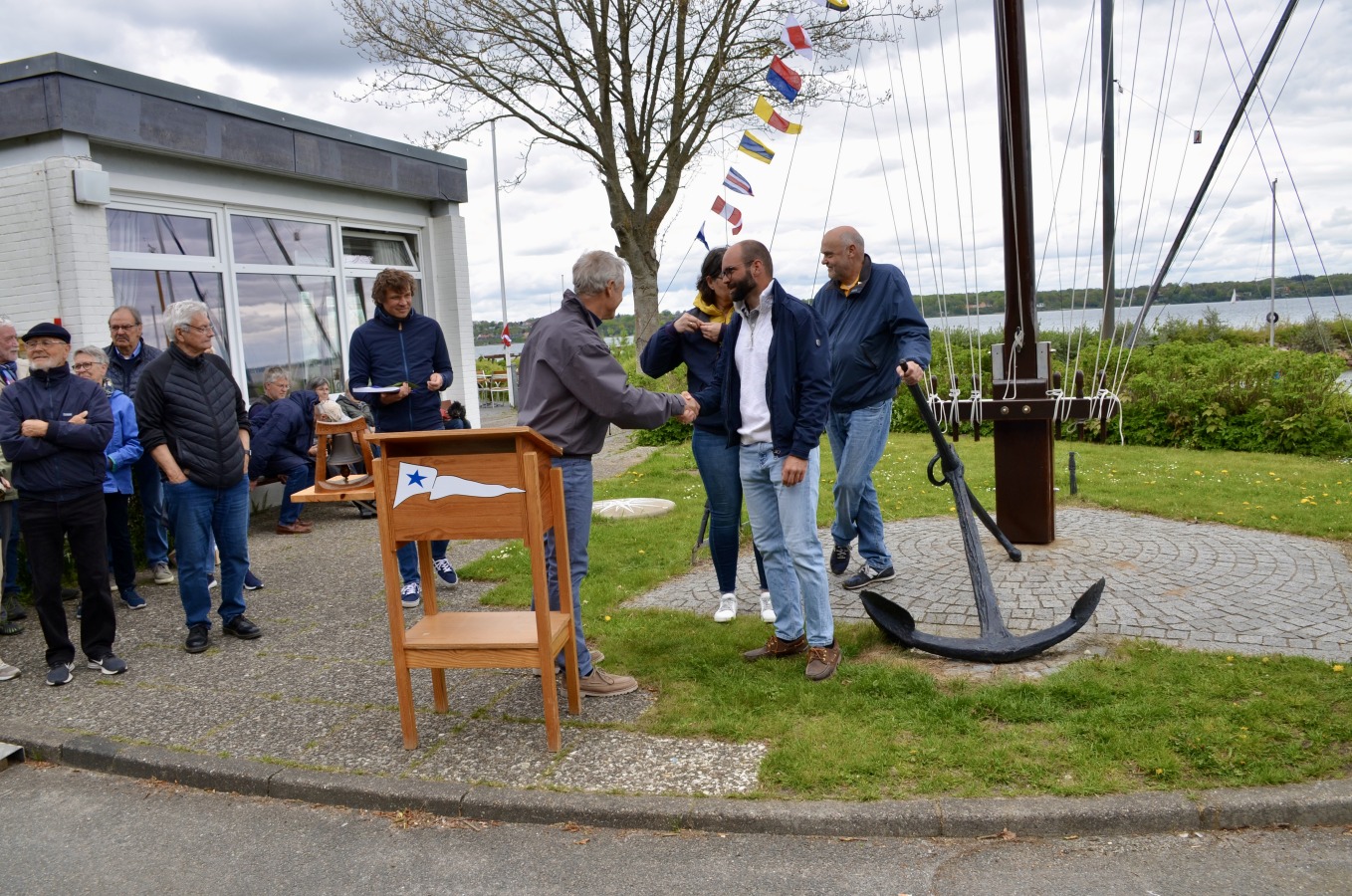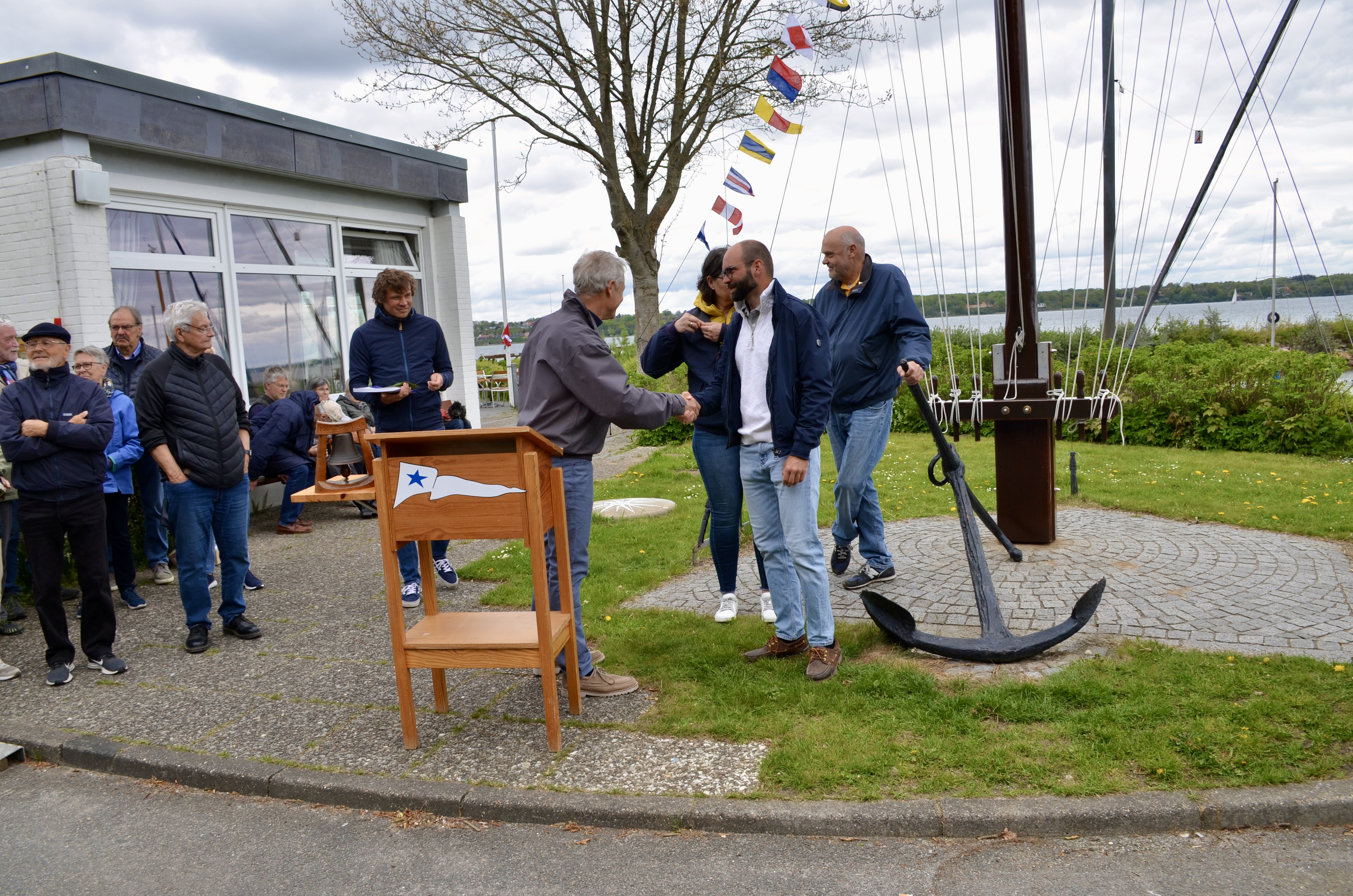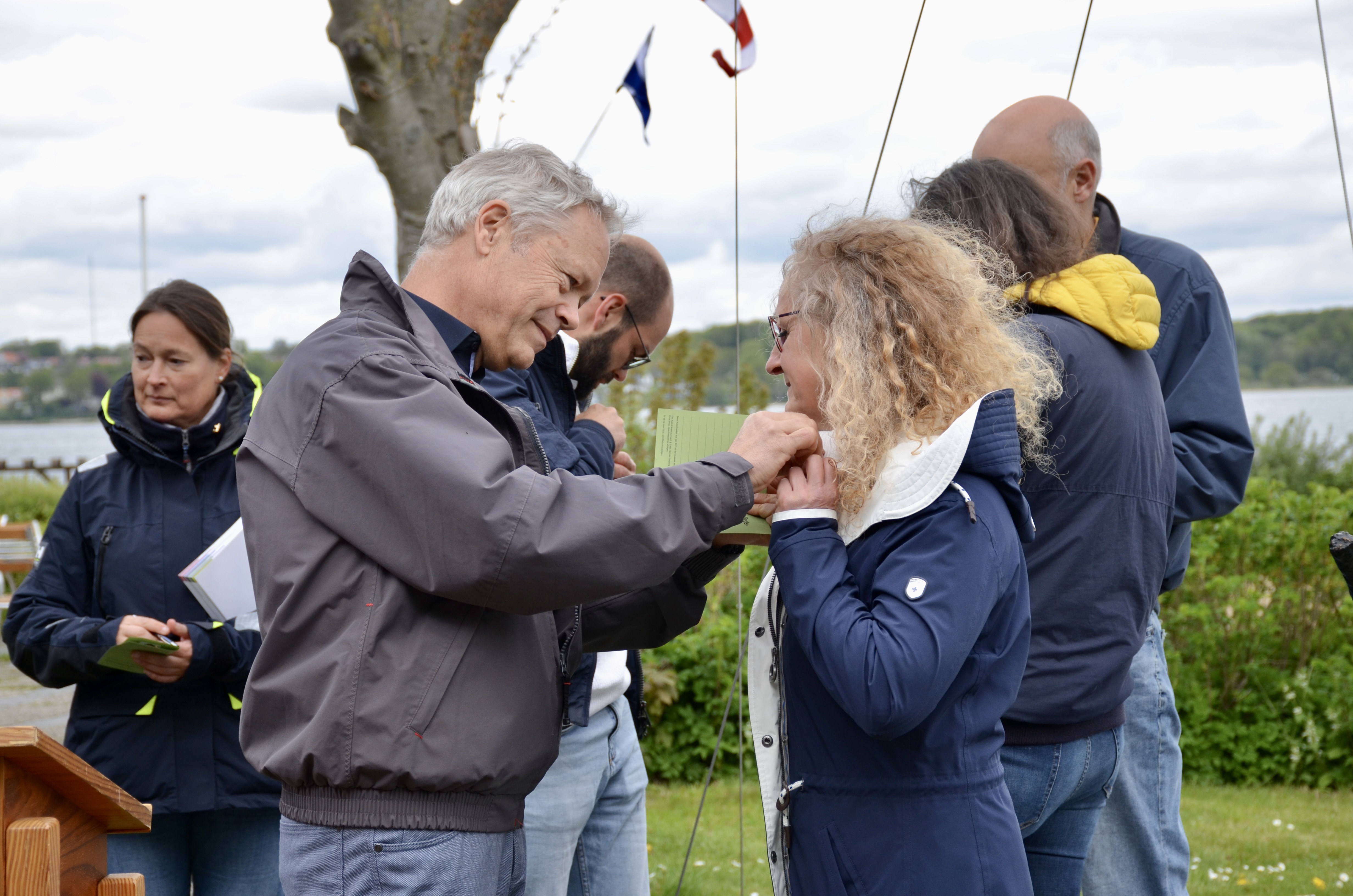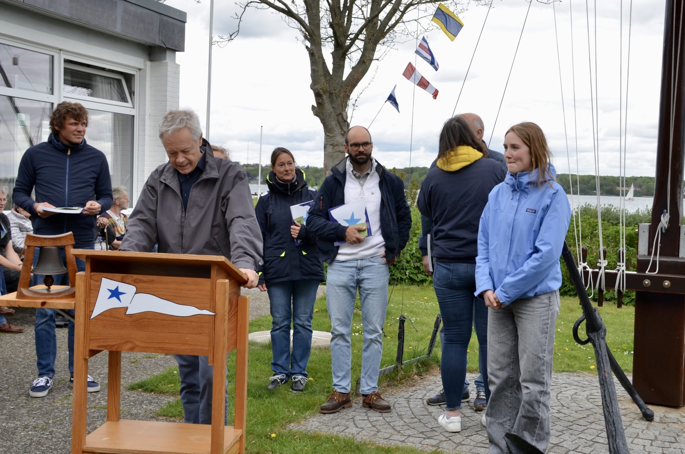 Der stv. Kommandeur der Marineschule, Herr Kapitän zur See Jens Martin nahm den großen Stander der SVF im Empfang, um mit der POSEIDON das Flaggschiff, also das "richtungsweisende" Führungsschiff der Schiffsflotte zum Ansegeln zu sein.