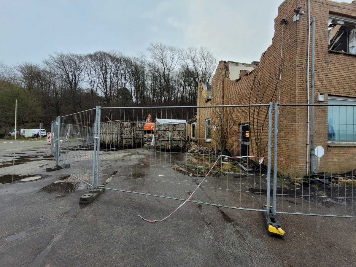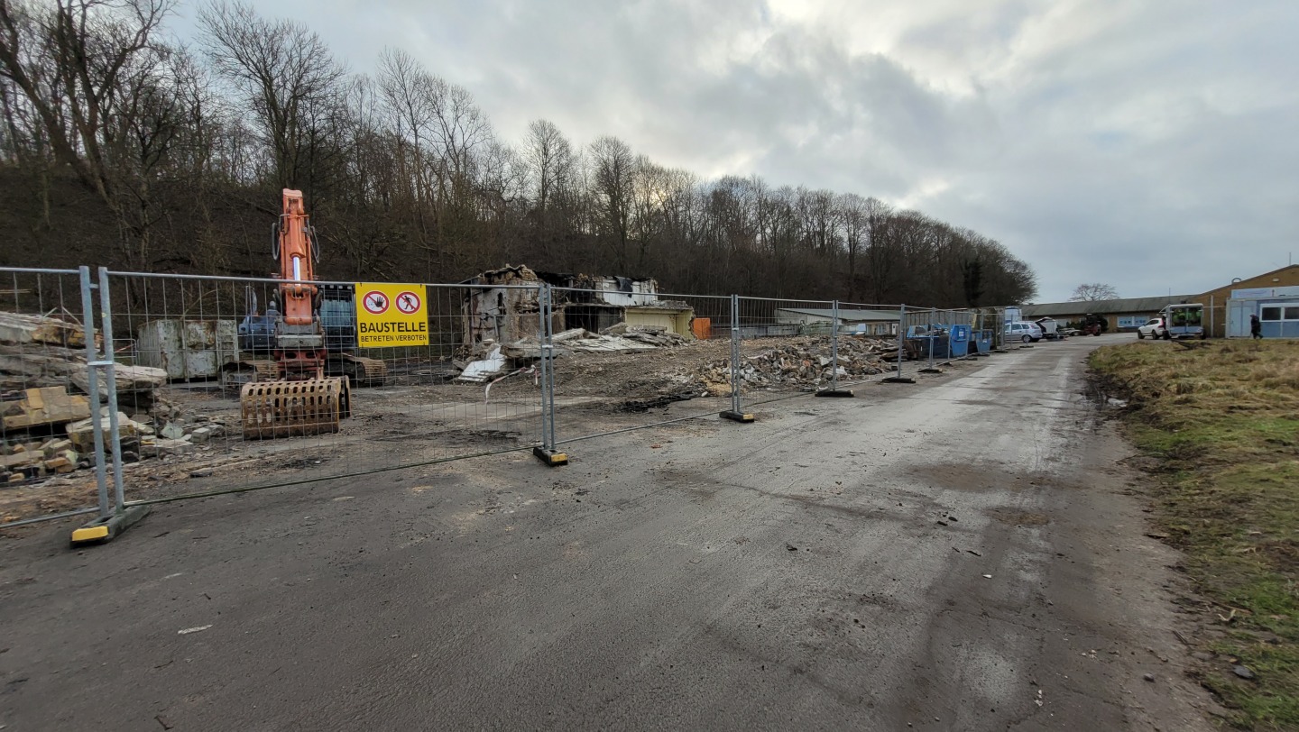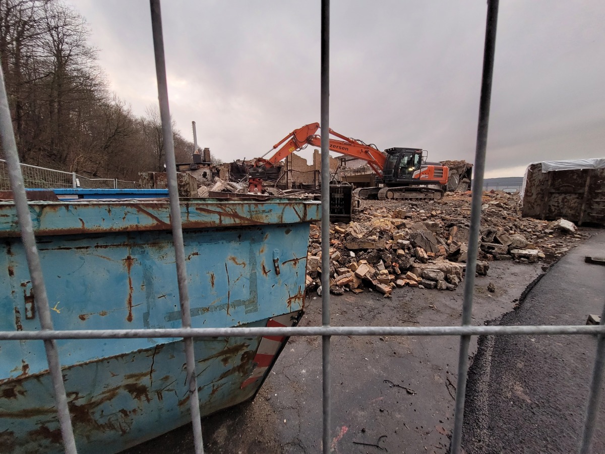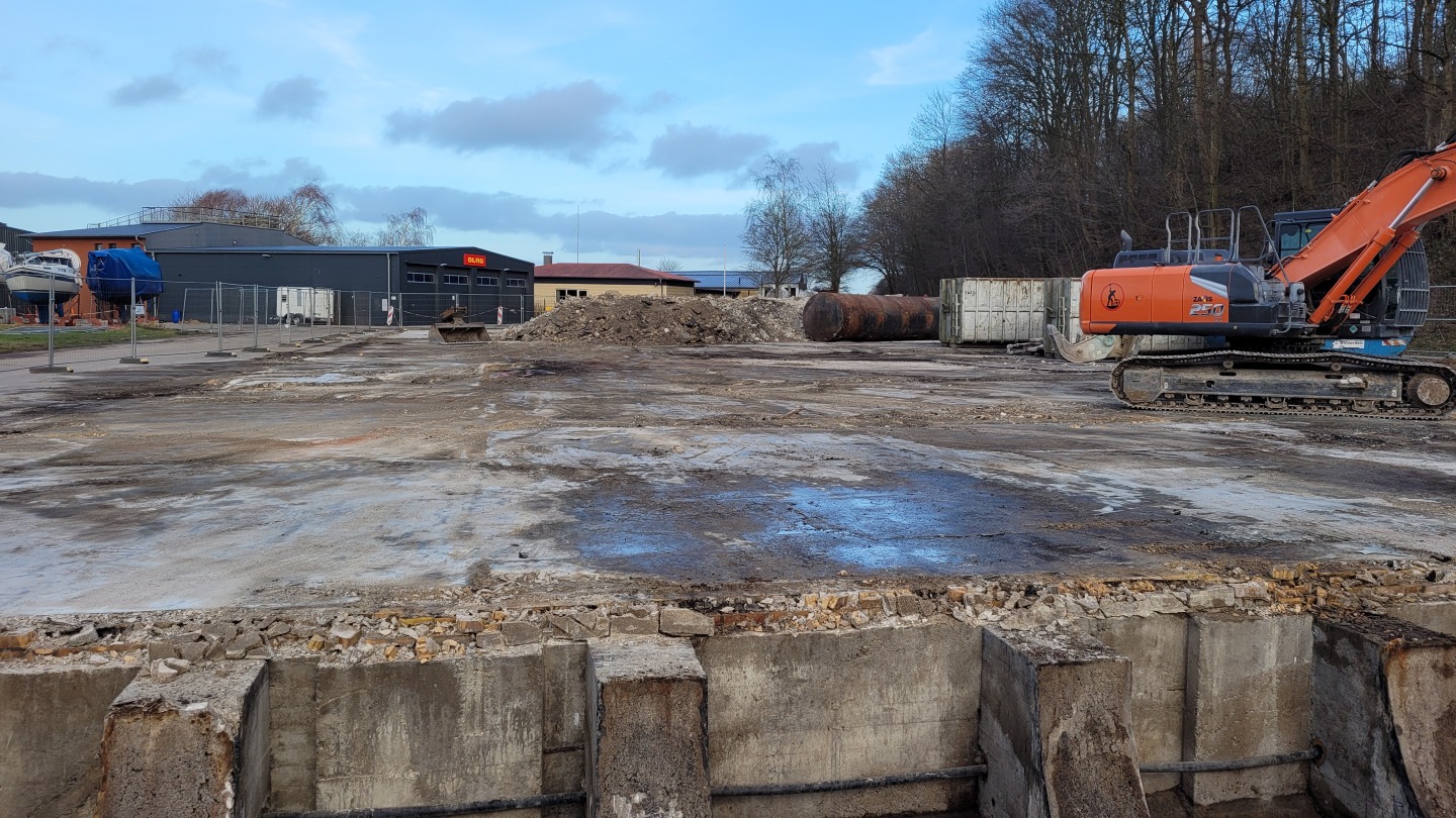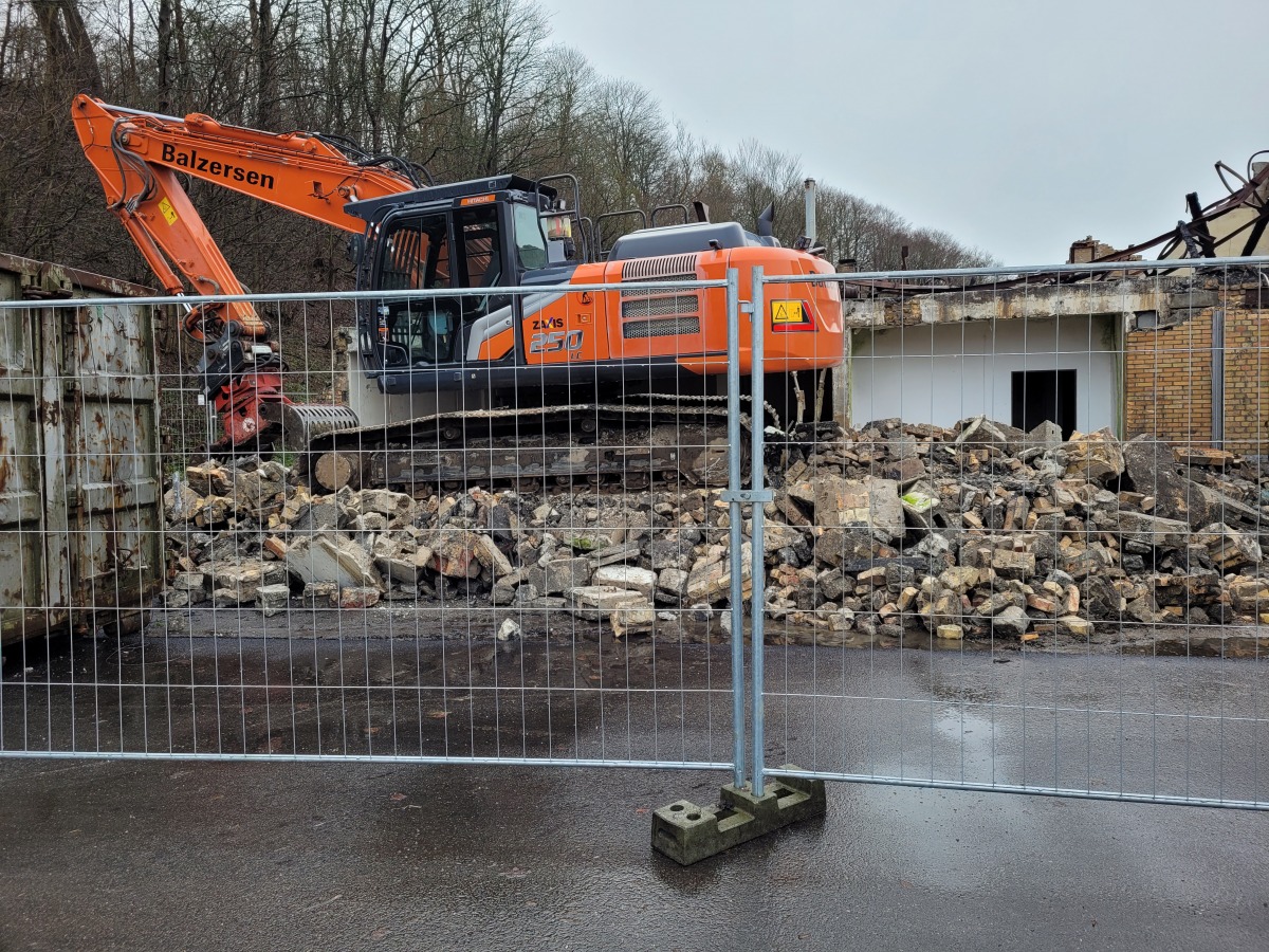 Abriss der alten Flugzeughalle auf Fahrensodde 20 nach dem Brand im Frühjahr 2021.