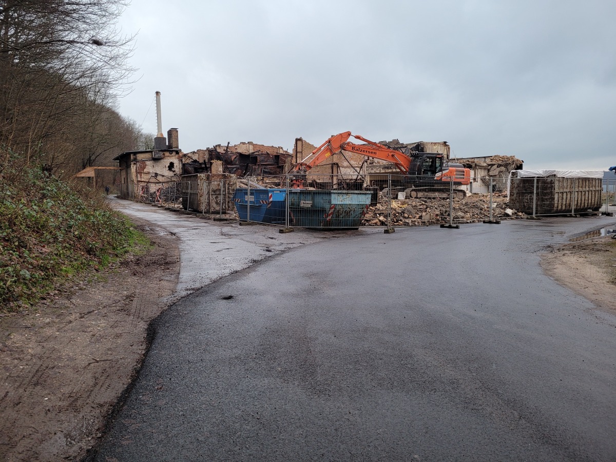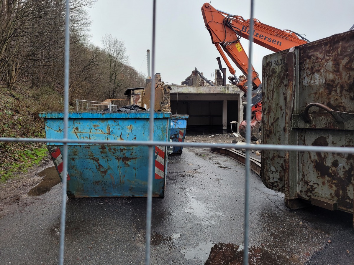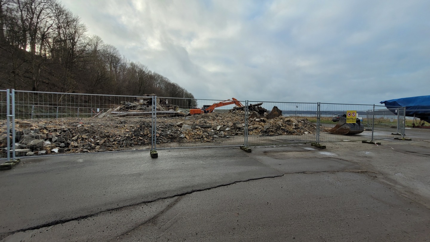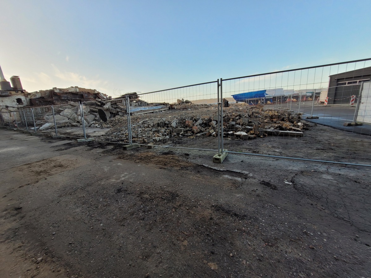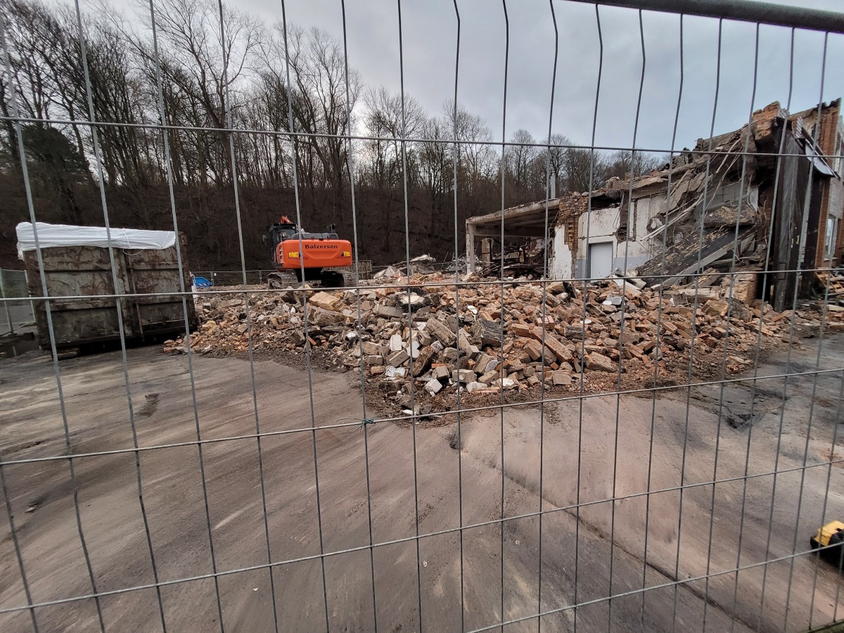 Abriss der alten Flugzeughalle auf Fahrensodde 20 nach dem Brand im Frühjahr 2021.