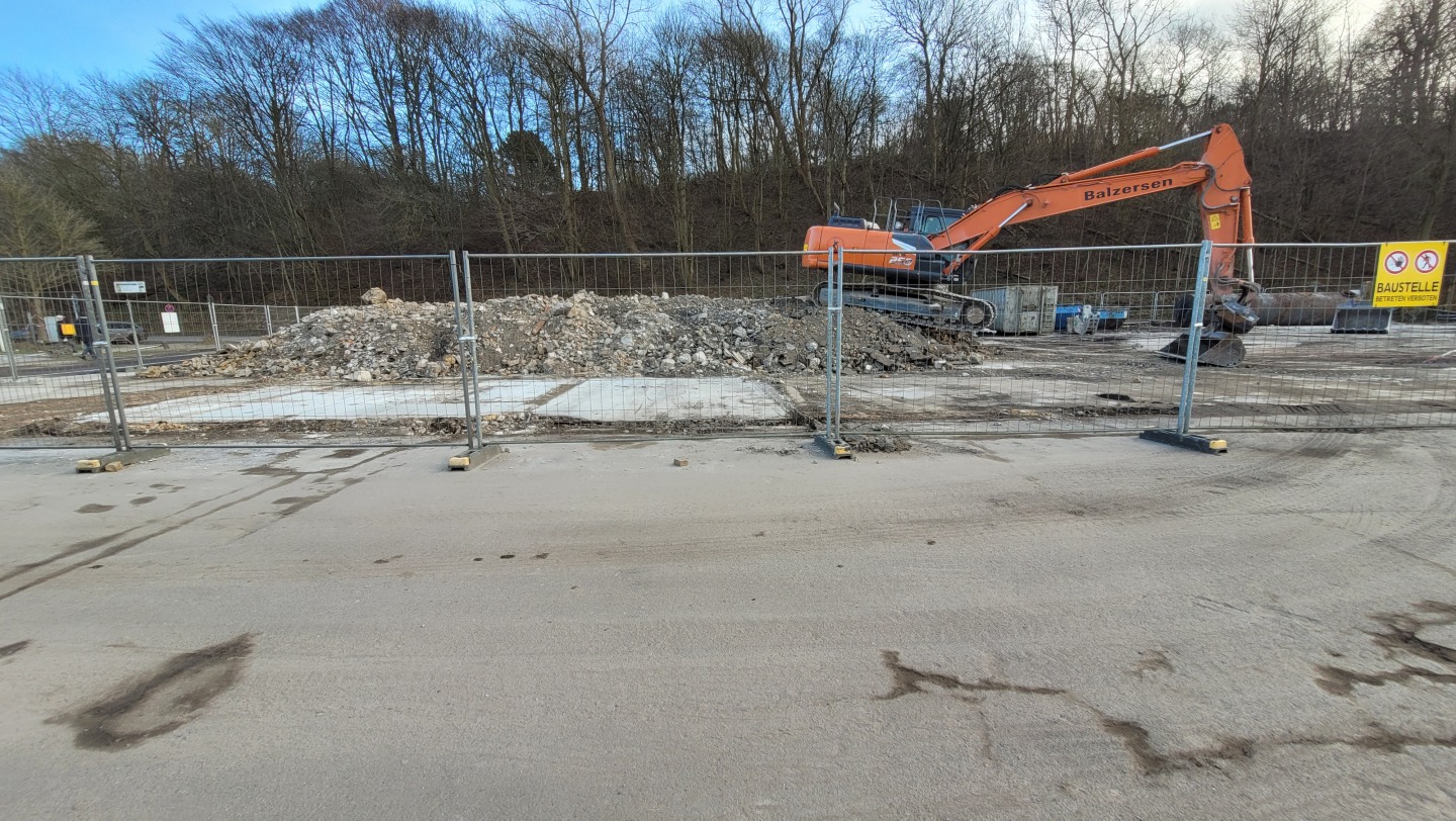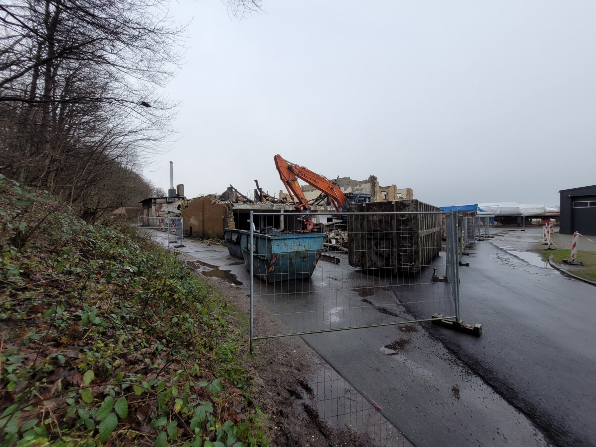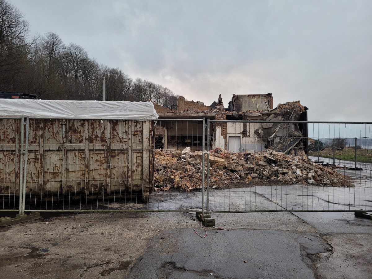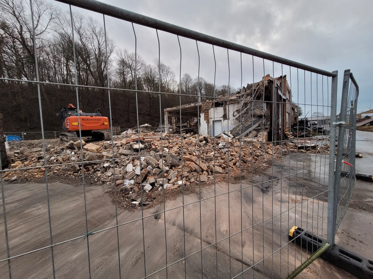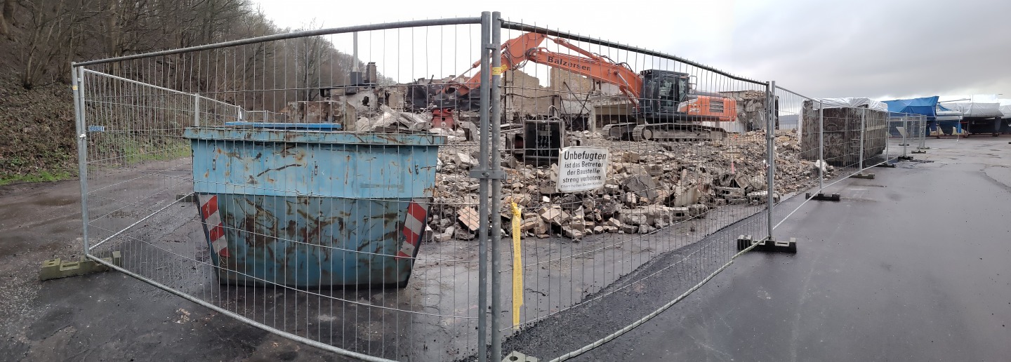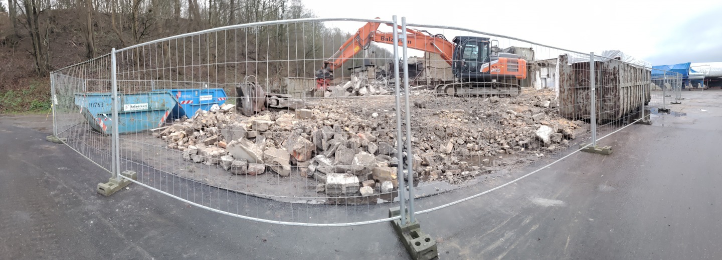 Abriss der alten Flugzeughalle auf Fahrensodde 20 nach dem Brand im Frühjahr 2021.