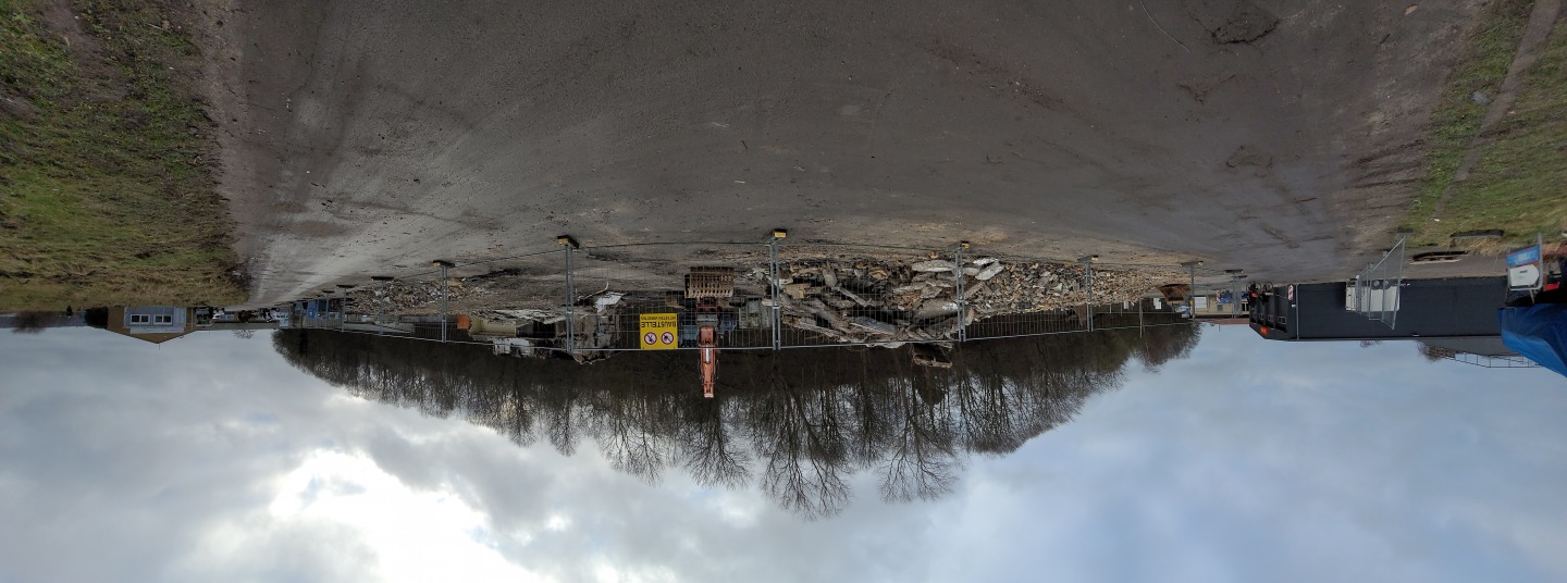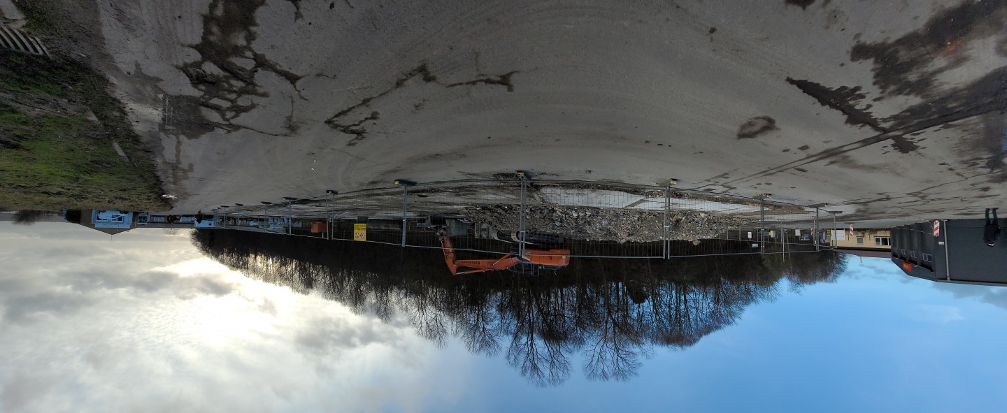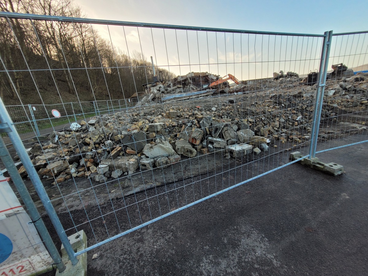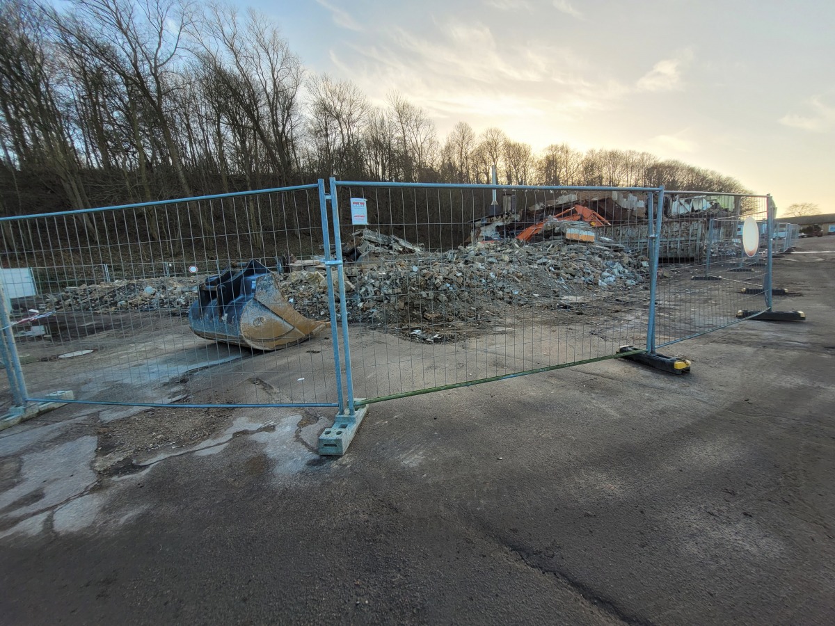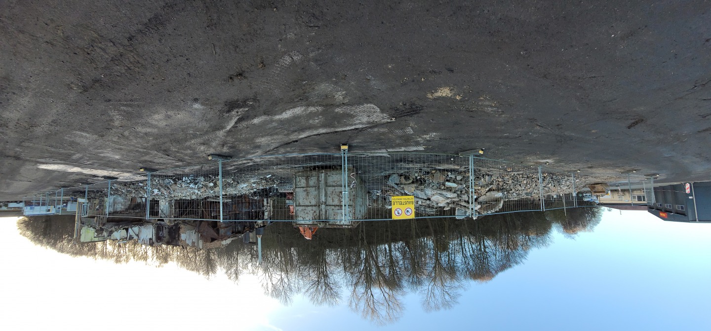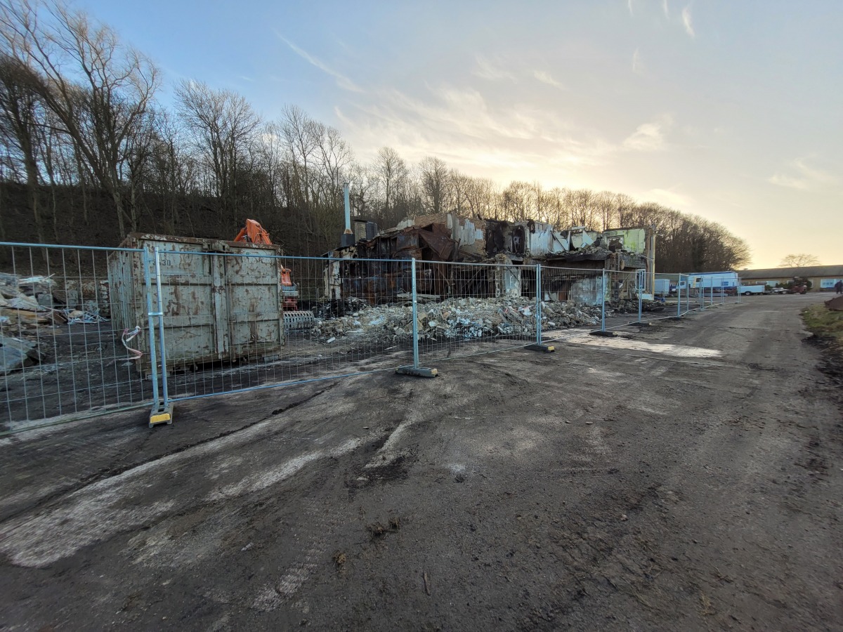 Abriss der alten Flugzeughalle auf Fahrensodde 20 nach dem Brand im Frühjahr 2021.