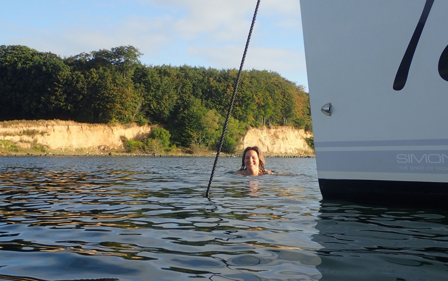 Spätsommerbaden vor der Steilküste von Skeldekobbel